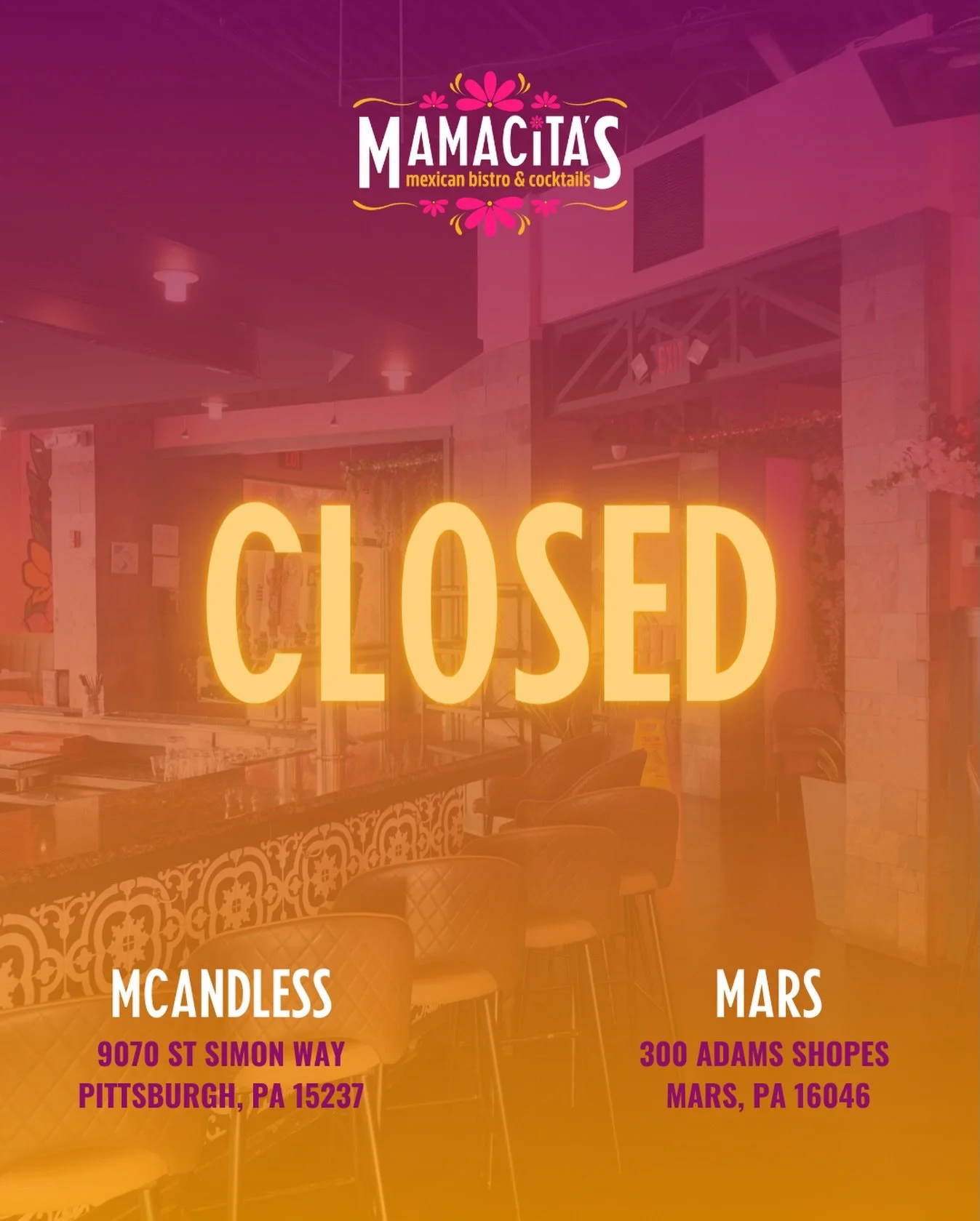 Welcome to Mamacita’s Mexican Bistro & Cocktails, an authentic Mexican restaurant located in the Adams Shoppes of Mars, PA and McCandless Crossing in McCandless, PA.