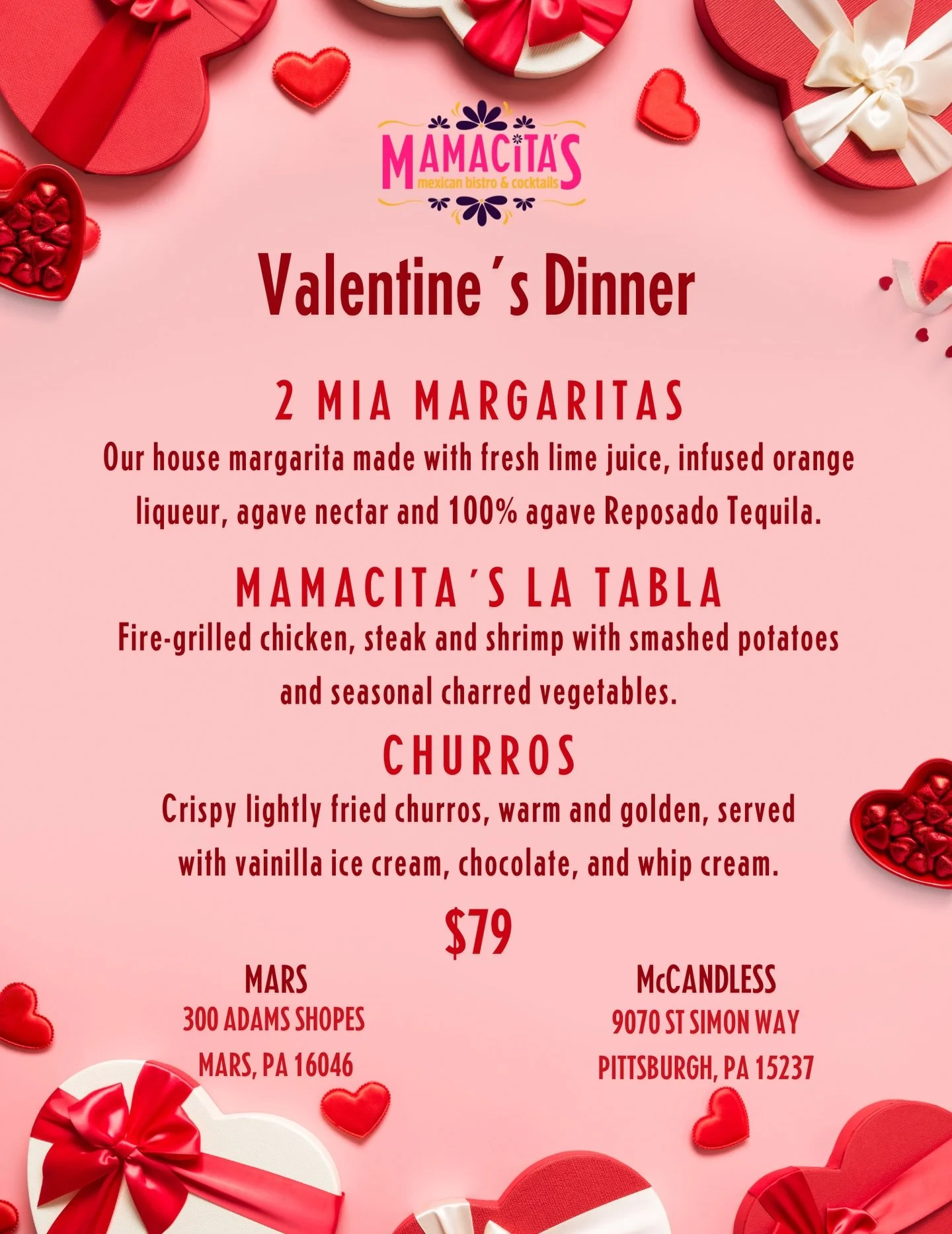 Welcome to Mamacitaโs Mexican Bistro & Cocktails, where the classics of Mexican cuisine get a sassy, modern makeover. Located in Mars, PA and McCandless, PA, weโre here to bring you bold flavors, premium cocktails, and an unforgettable dining experience.